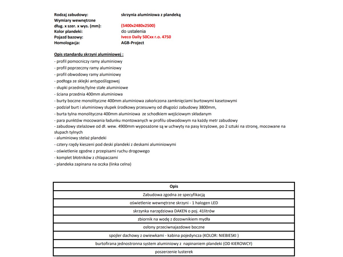 - Gotowy do pracy – Pojazd dostępny od ręki, z pełną gwarancją producenta i możliwością doposażenia według potrzeb (np. spoiler dachowy, spoiler tylny, zabudowa z windą).